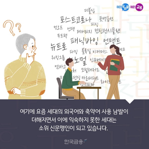 외국어 전문용어 사용은 세대 간 대화에도 장벽이 되는 경우가 많습니다.