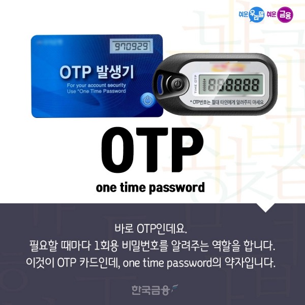 이 카드를 굳이 OTP라는 영어 약어로 말해야 할 이유가 있을까요?