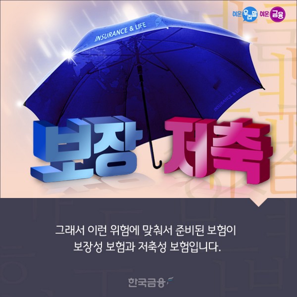 먼저 보장성 보험은요. 만일의 사고에 대비한 보험이지요.
