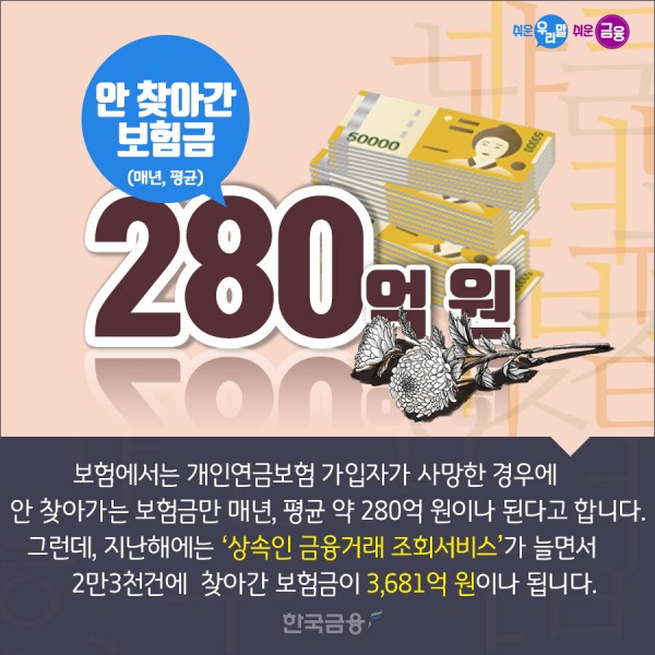 안 찾아가는 보험금만 매년, 평균 약 280억 원이나 된다고 합니다.