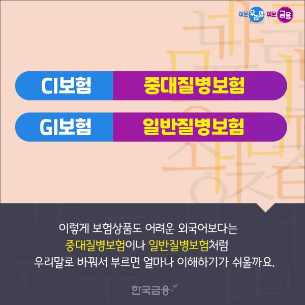 이렇게 보험상품도 어려운 외국어보다는 중대질병보험이나 일반질병보험처럼