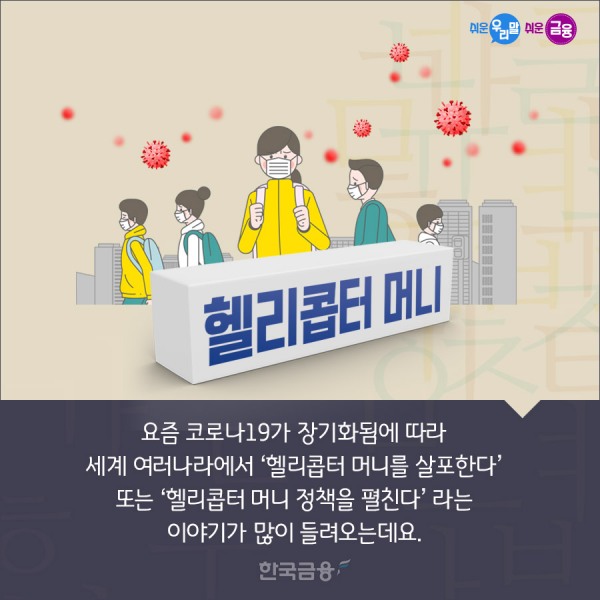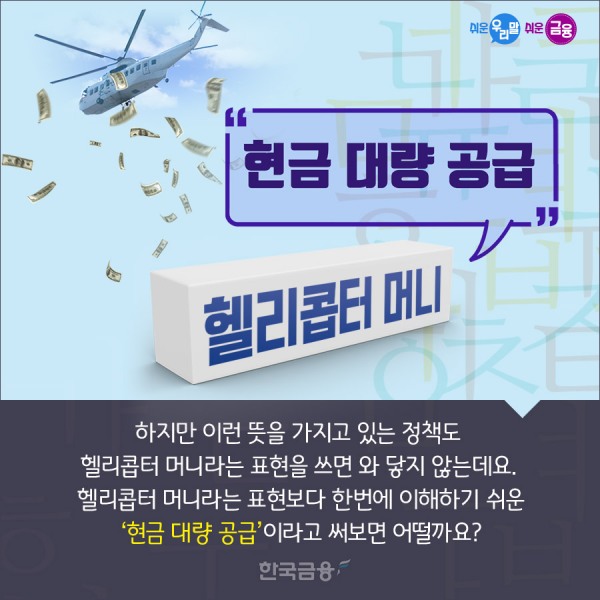 헬리콥터 머니라는 표현을 쓰면 와 닿지 않는데요.