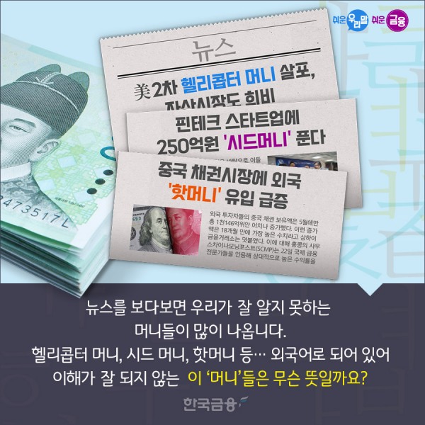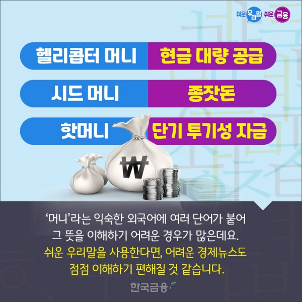 헬리콥터 머니, 시드 머니, 핫머니 등…