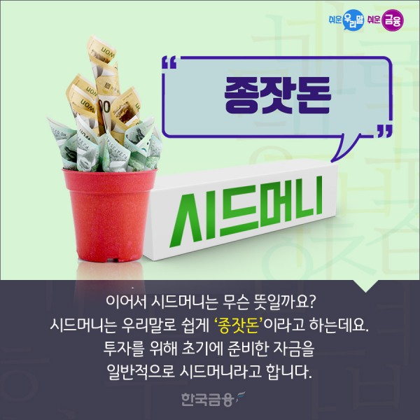 시드머니는 우리말로 쉽게 ‘종잣돈’이라고 하는데요.