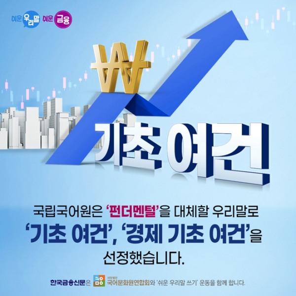 국립국어원은 펀더멘털을 대체할 쉬운 우리말로 ‘기초 여건’ 혹은 ‘경제 기초 여건’을 선정했습니다.