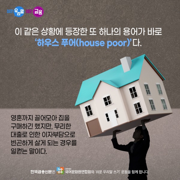 이 같은 상황에 등장한 또 하나의 용어는 바로 ‘하우스 푸어(house poor)’다. 영혼까지 끌어모아 집을 구매하긴 했지만, 무리한 대출로 인한 이자부담으로 빈곤하게 살게 되는 경우를 일컫는 말이다.