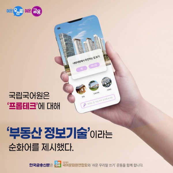 국립국어원과 새말모임은 프롭테크에 대해 ‘부동산 정보 기술’이라는 순화어를 제시했다. 이제는 생소한 프롭테크가 아닌 ‘부동산 정보 기술’로 순화해 쓸 때이다.