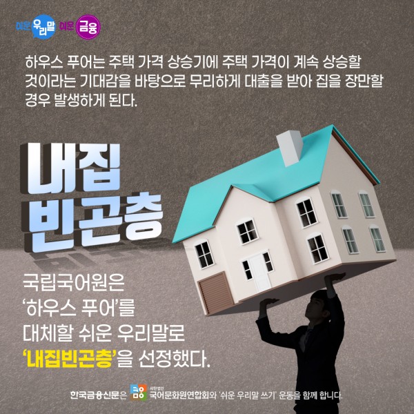 국립국어원은 ‘하우스 푸어’를 대체할 쉬운 우리말로 ‘내집빈곤층’을 선정했다.