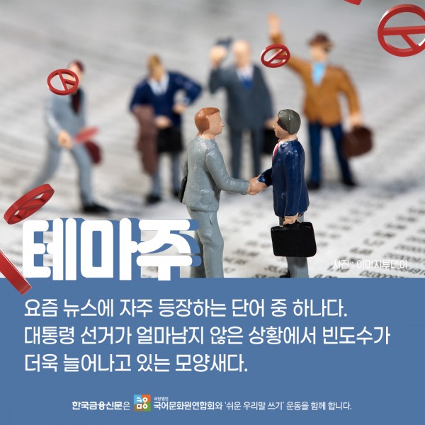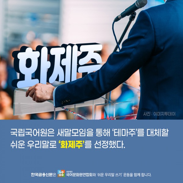 문화체육관광부와 국립국어원은 2021년 2월 새말모임을 통해 ‘테마주’를 대체할 쉬운 우리말로 ‘화제주’를 선정했다.