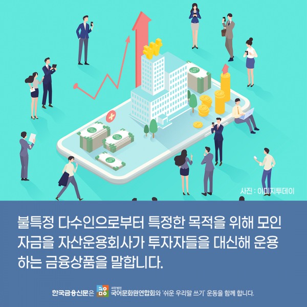 흔히 알고 있는 펀드(Fund)는 ‘기금’ 혹은 ‘자금’을 말합니다. 불특정 다수인으로부터 특정한 목적을 위해 모인 자금을 자산운용회사가 투자자들을 대신해 운용하는 금융상품을 말합니다.