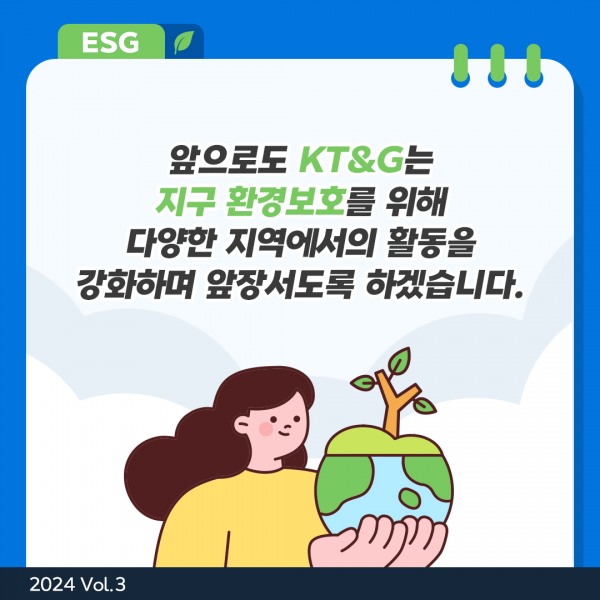 앞으로도 KT&G는 지구 환경보호를 위해 다양한 지역에서의 활동을