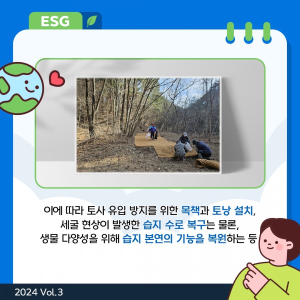 세굴 현상이 발생한 습지 수로 복구는 물론,