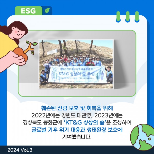 경상북도 봉화군에 'KT&G 상상의 숲'을 조성하여 글로벌 기후 위기 대응과