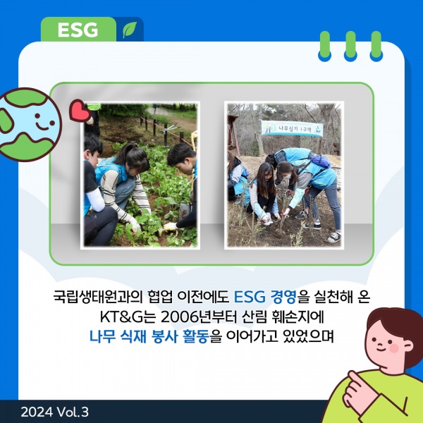KT&G도 생태계 복원을 위해 힘쓰고 있다고 합니다.