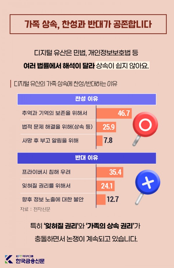 디지털 유산을 반대하는 이유는 ‘프라이버시 침해 우려’가 대표적이에요.