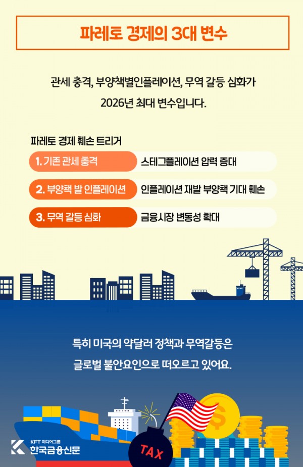 관세 충격, 부양책별인플레이션, 무역 갈등 심화가 2026년 최대 변수입니다.특히 미국의 약달러 정책과 무역갈등은 글로벌 불안요인으로 떠오르고 있어요.